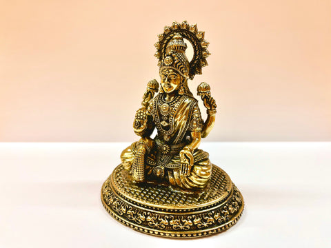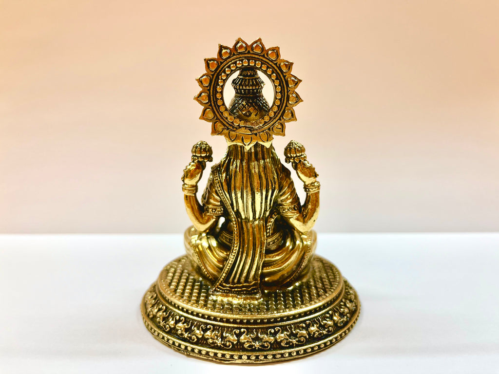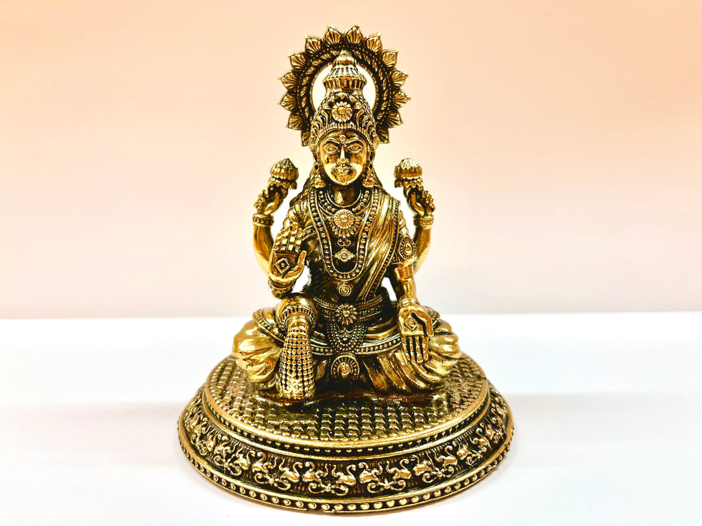 This is our highest quality murti statue of Goddess Lakshmi Ma. Made out of pure brass with extra fine details. A wonderful statue to treasure and have on your alter.